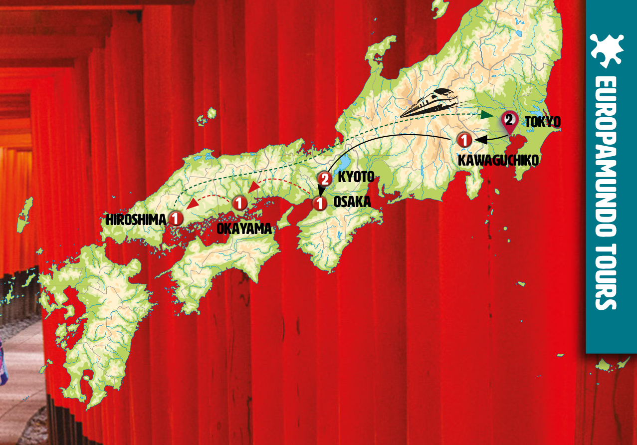 Activities and excursions as described in the program. City tour in: Tokyo and Kyoto.
