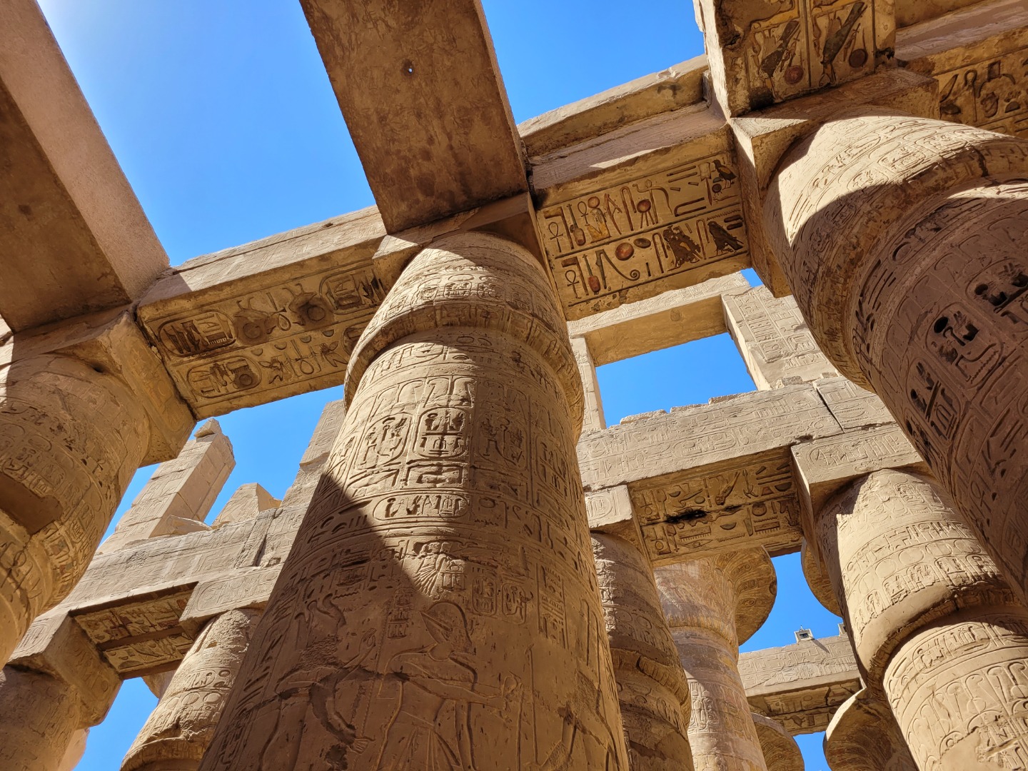 El Cairo – Luxor – Embarque en el crucero por el Nilo. Tras el desayuno en su hotel de El Cairo, será trasladado al Aeropuerto Internacional de El Cairo para su vuelo a Luxor, la antigua ciudad a menudo considerada el mayor museo al aire libre del mundo. A su llegada, comience su viaje con una visita directa a los Templos de Karnak, un extraordinario complejo dedicado al dios Amón-Ra. Recorra la imponente Sala Hipóstila, un conjunto de 134 columnas colosales, cada una adornada con intrincados jeroglíficos y grabados que se han mantenido en pie durante milenios. Este sitio monumental encarna el poder y la devoción de la antigua civilización egipcia en su apogeo.