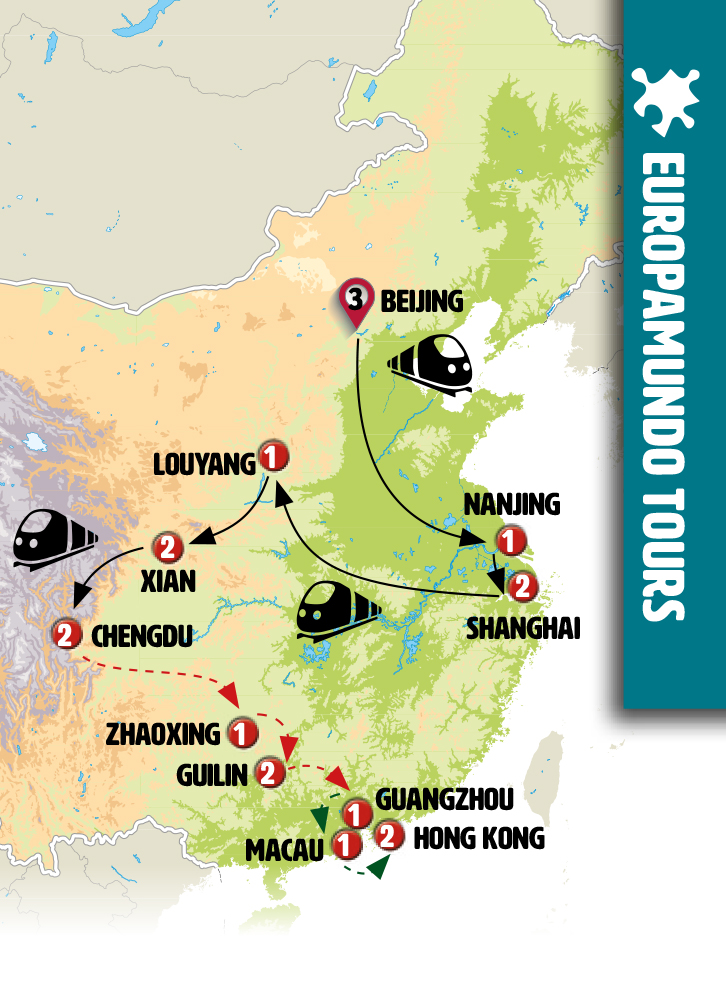 (ПЕКИН - НАНЦЗИН - СУЧЖОУ - ТОНГЛИ - ШАНХАЙ - ЛУОЯН - МОНАСТЫРЬ БЕЛЫХ ЛОШАДЕЙ - САНМЕКСИЯ - СЯНЬ - ЧЭНДУ - MIAO ДЕРЕВНЯ - ЖАОКСИНГ - GUANGXIAO - ЧЕНЬЯН - Длительный - ГИЛИН - КРУИЗ ПО РЕКЕ - ЯНГШУО - ХУАНГЯО - ГУАНЧЖОУ - ЖУХАЙ - МАКАУ - ГОНКОНГ). (Нет минимальных пассажиров для тура)